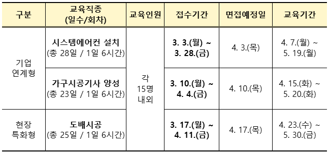 - 가구시공기사 양성: 3.10.(월) ~ 4.4.(금)